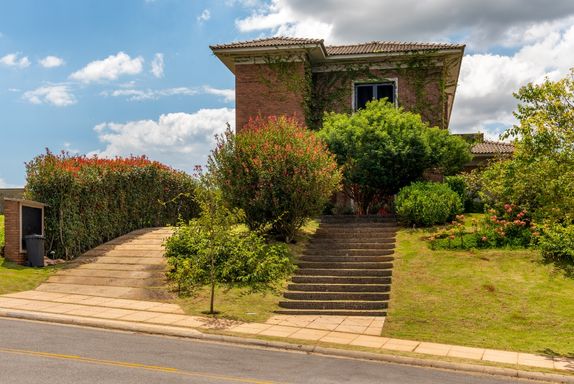 Ampla casa recém-reformada, em 2 níveis, localizada a apenas 7 minutos do centro, em Condomínio de aspecto rural, com apenas 31 lotes e área social com paisagismo exuberante, piscina, playground, churrasqueira, quadra de tênis, quadra poliesportiva, campo de futebol e vestiários. Possui elevador conectando a garagem, com 4 vagas. Sala em 3 ambientes integrados, copa, cozinha, despensa e área de serviço com banheiro. Na área intima: sala, escritório, banheiro, roupeiro, 2 suítes com closet alimentadas por energia solar e 2 quartos compartilhando banheiro americano. Na área externa: piscina (9,20 x 2,40 mts / 1,40 mts de profundidade) e solarium com agradável vista para natureza. Piso interno em ardósia e cerâmica.