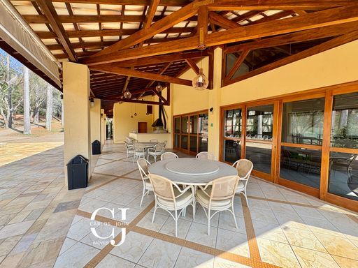 A sala de estar e jantar, com pé-direito de 7m e lareira, traz amplitude e sofisticação ao ambiente, ideal para reunir família e amigos em qualquer estação do ano.