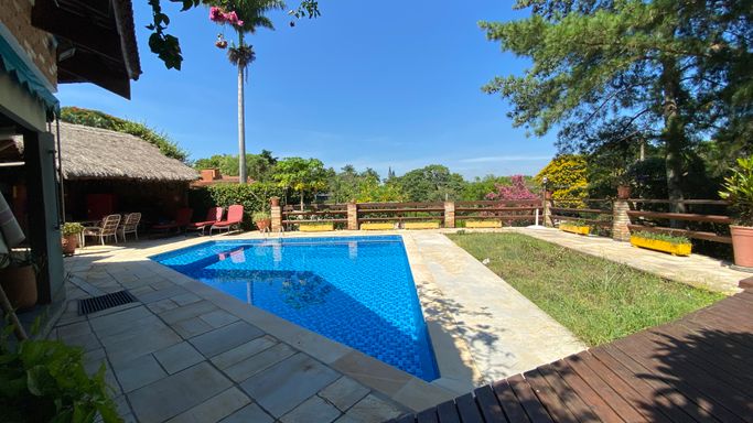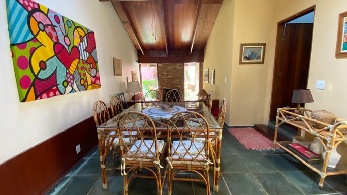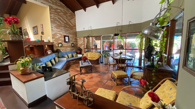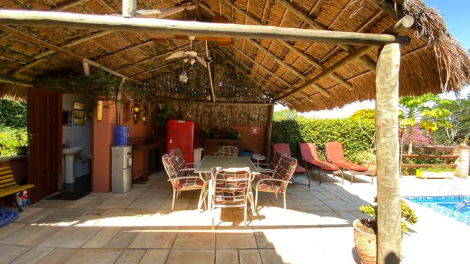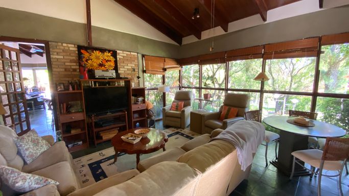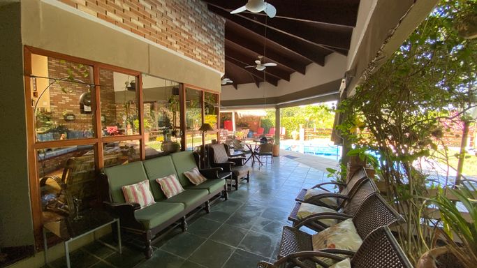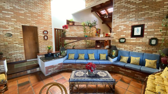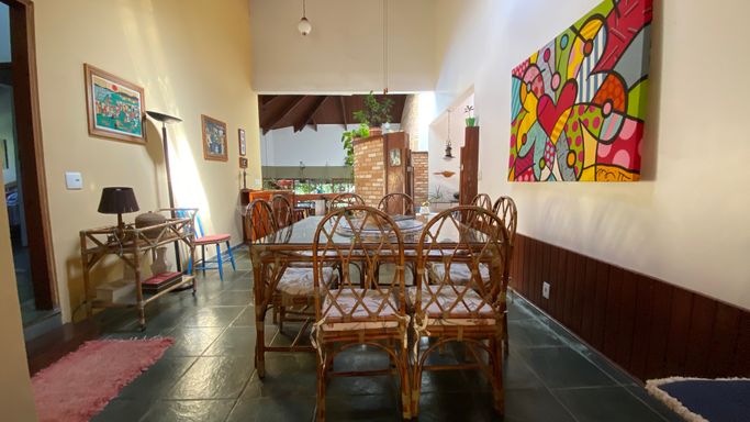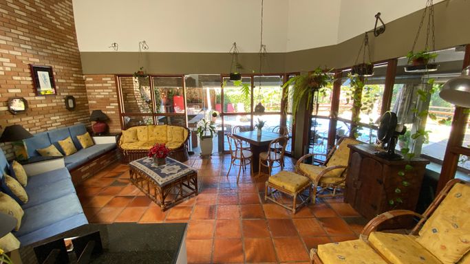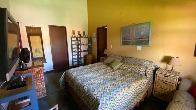 Com 605 m2 de área construída, em 1500 m2 de terreno, o imóvel possui 4 quartos na área interna, sendo uma suíte e mais 2 banheiros. Na área em anexo, uma suíte e um quarto interligados, criam um excelente espaço para hóspedes.