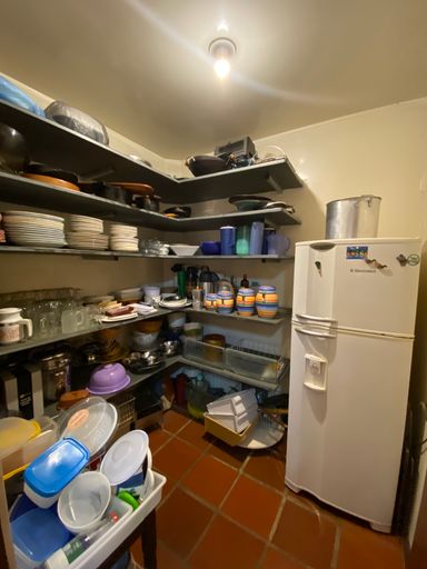 Copa, cozinha, despensa e área de serviço compõem o espaço de suporte.