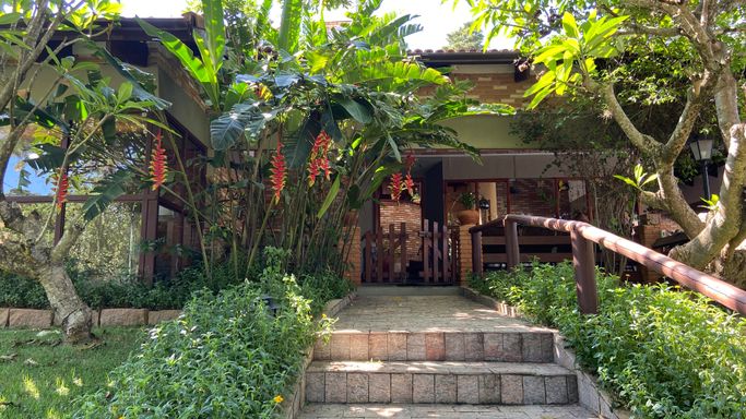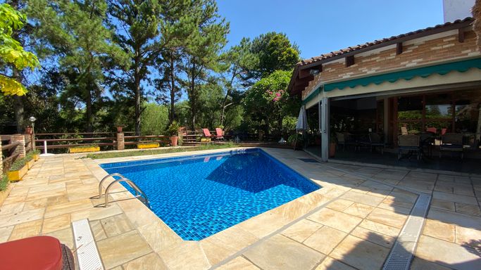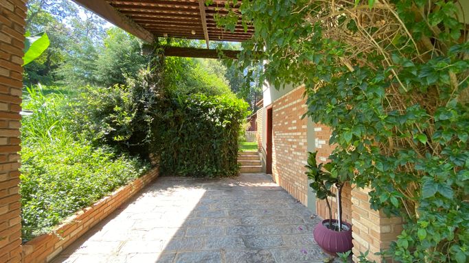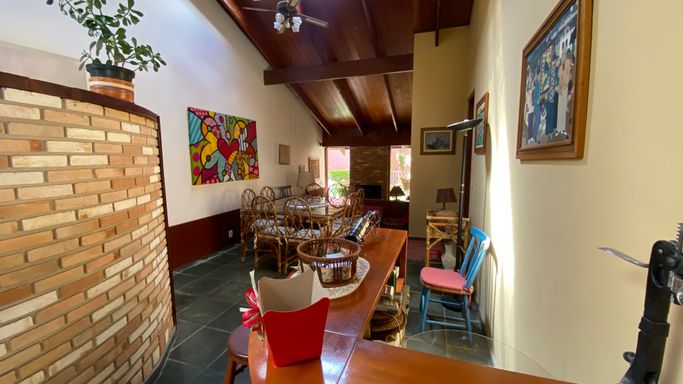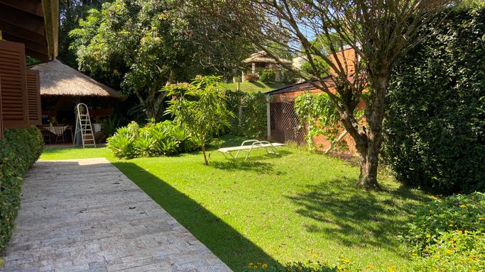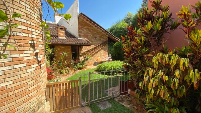Agradável e aconchegante casa, localizada no privilegiado Condomínio Ville de Chamonix, com características de uma chácara, envolta por muito verde, em rua de baixo movimento.