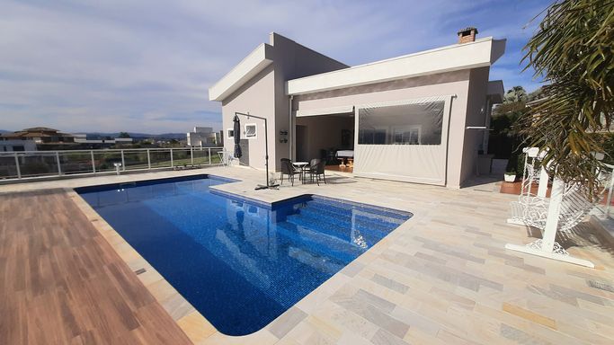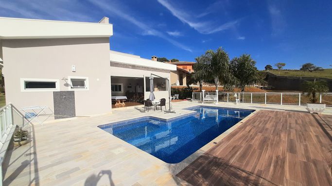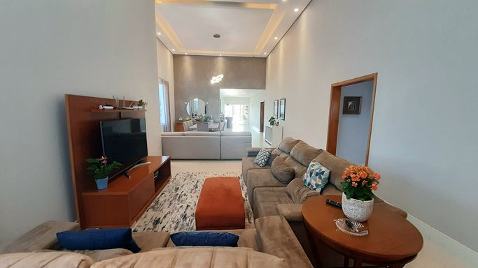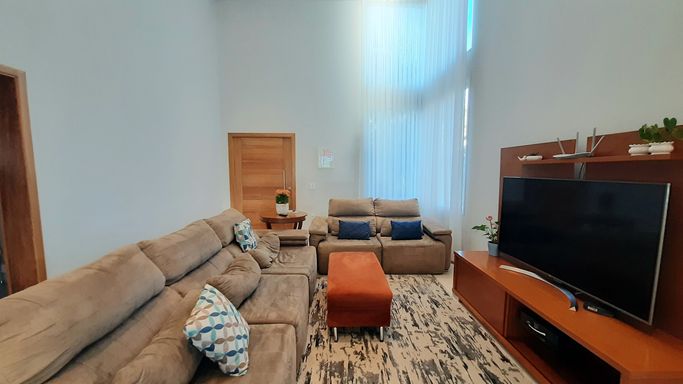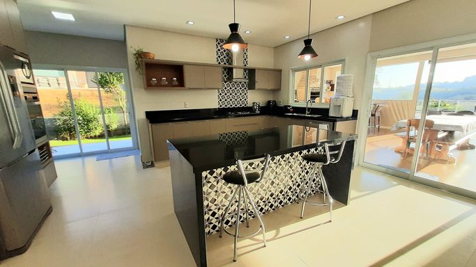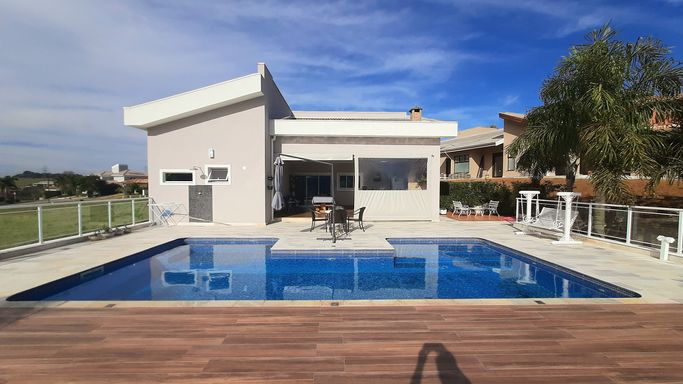 Aconchegante casa térrea com 387 m2 de área construída em terreno de 1282 m2, no privilegiado Condomínio Village das Palmeiras!