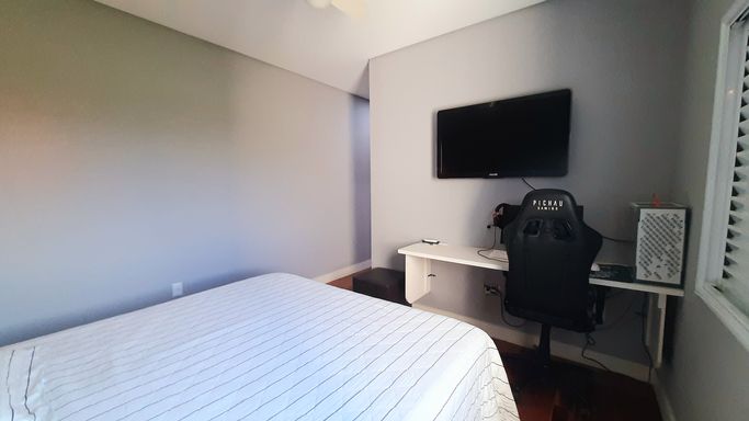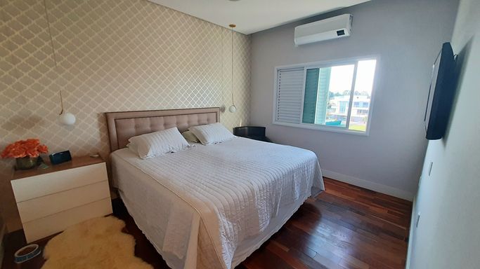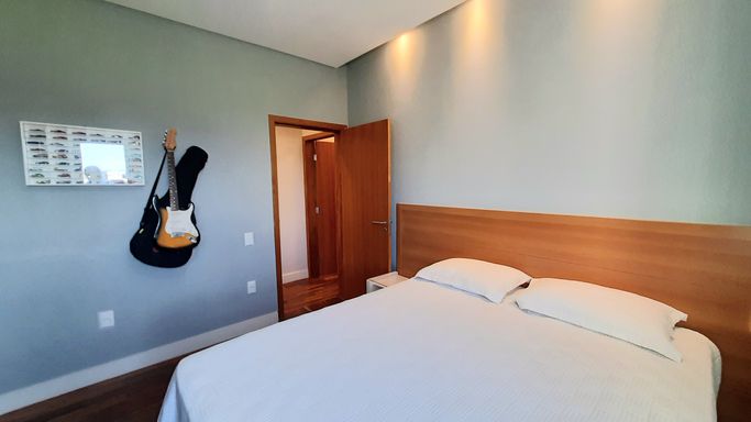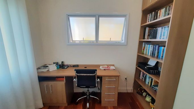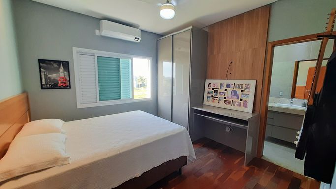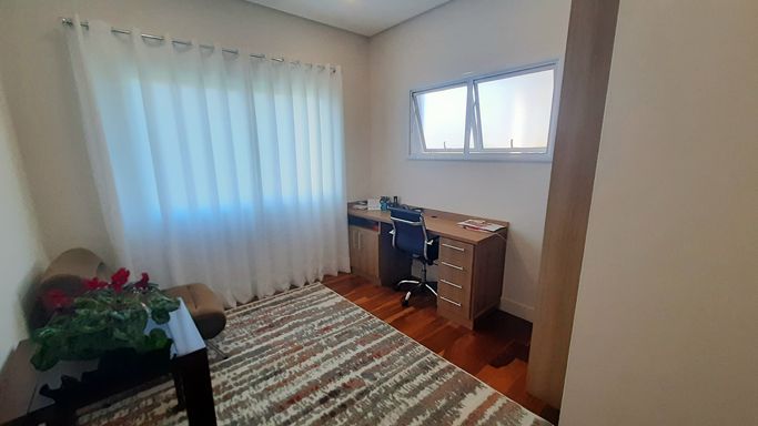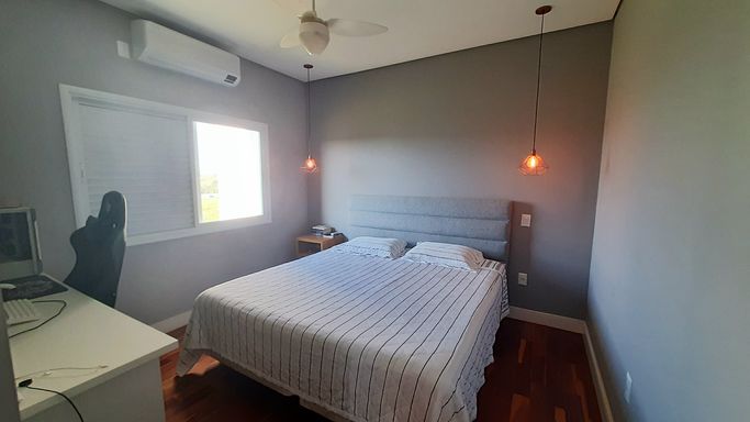 3 suítes com ar-condicionado e escritório, que pode ser convertido em mais um quarto, contemplam a área íntima.
